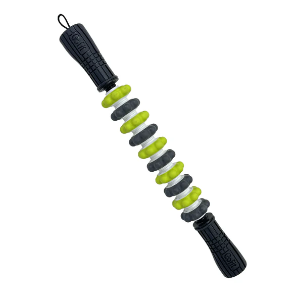 The Bendable Massage Bar bends to the body’s contours with rolling massage rings that wrap around muscles and fascia for deep tissue release. The bar’s spring-loaded design helps you reach more massage area, while optimizing massage compression.